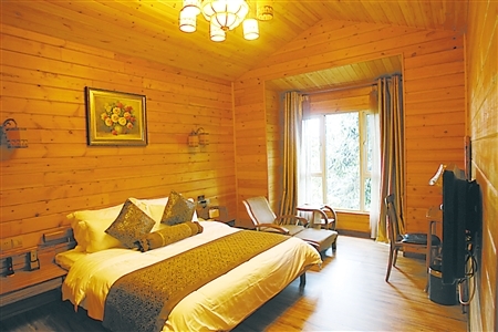 摩围山景区内的避暑木屋 记者 蒋雨龙 摄